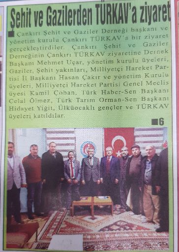 Şehit ve Gaziler Derneğinin TÜRKAV Çankırı Şubemizi ziyaretlerinden basına yansıyanlar.