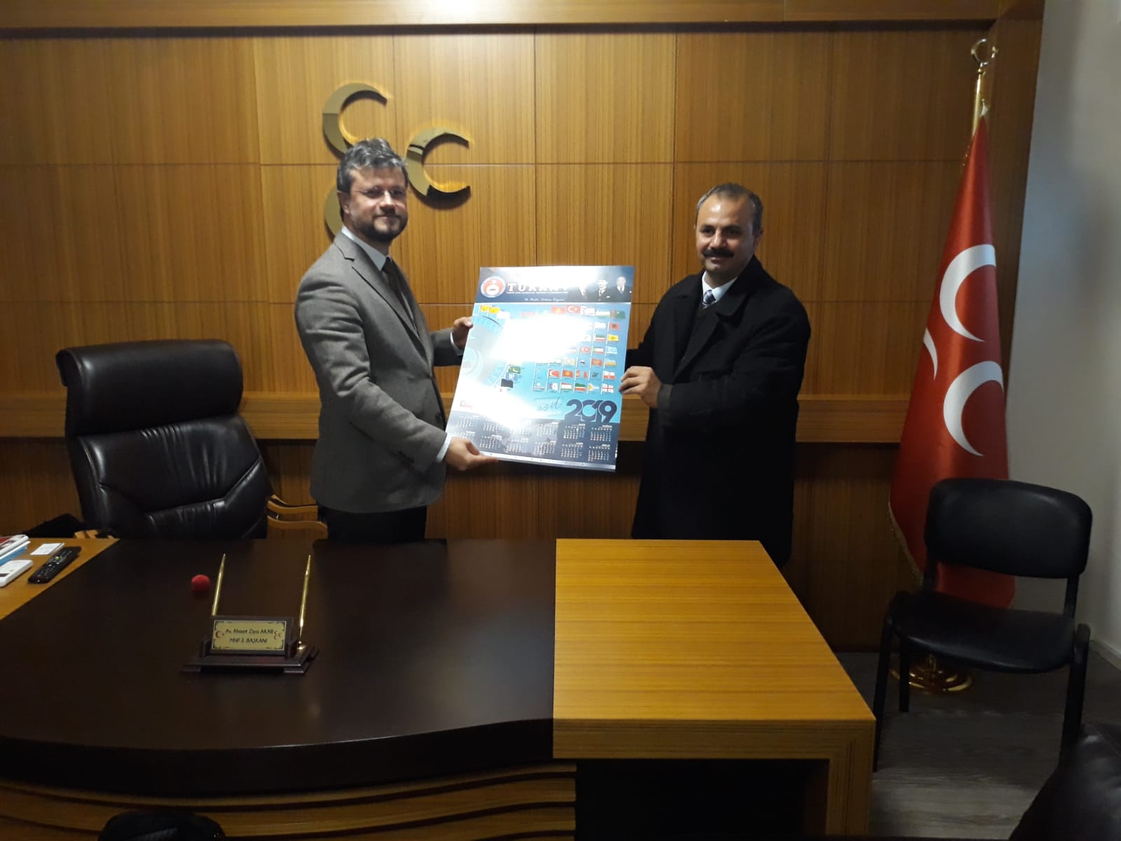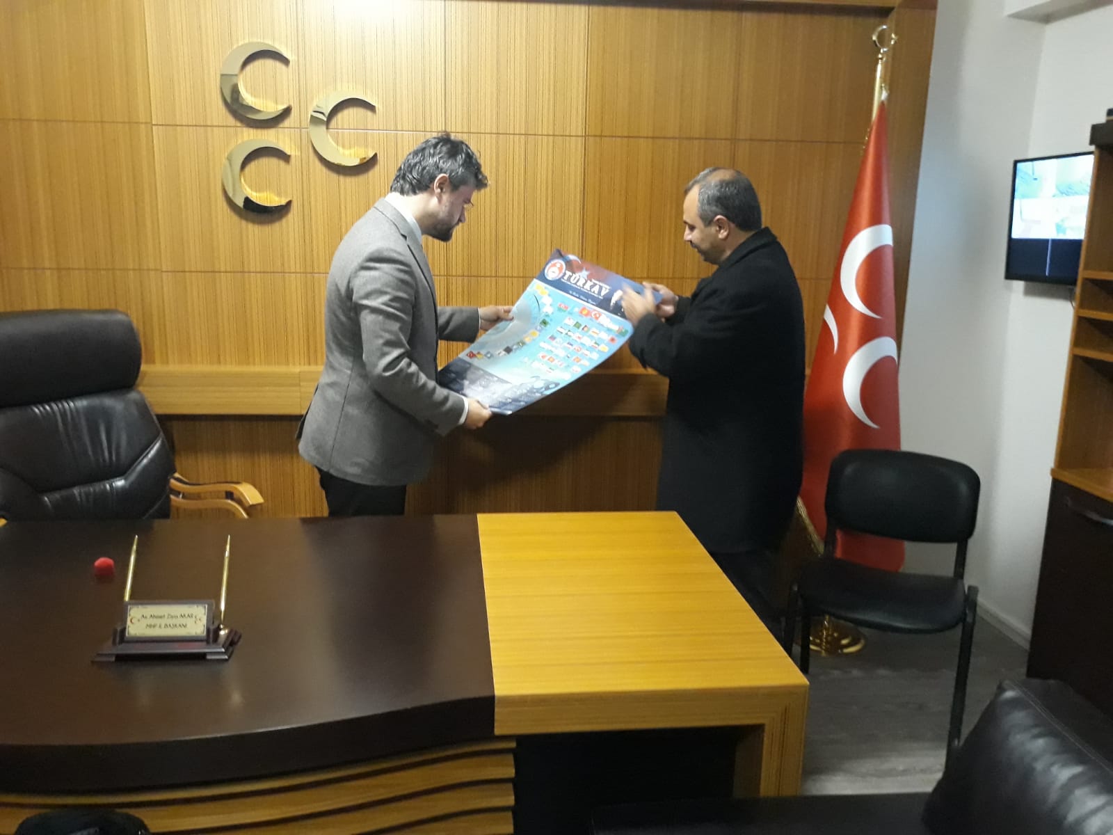 TÜRKAV Sakarya Şubesi olarak, Sakarya Mhp il başkanımızı ziyaret ederek 2019 yılı için hazırlanmış olan takvimimizi ve TÜRKAV rozetini takdim ettik. TÜRKAV Genel Merkezinin 2019 takvimi ve Rozeti çok beğenildi.